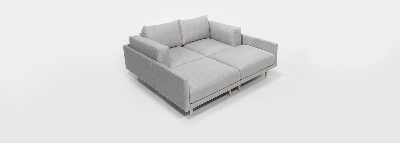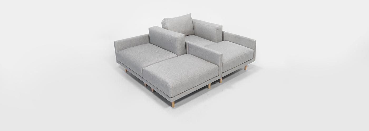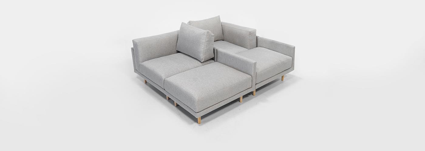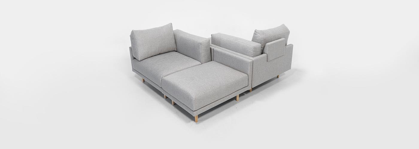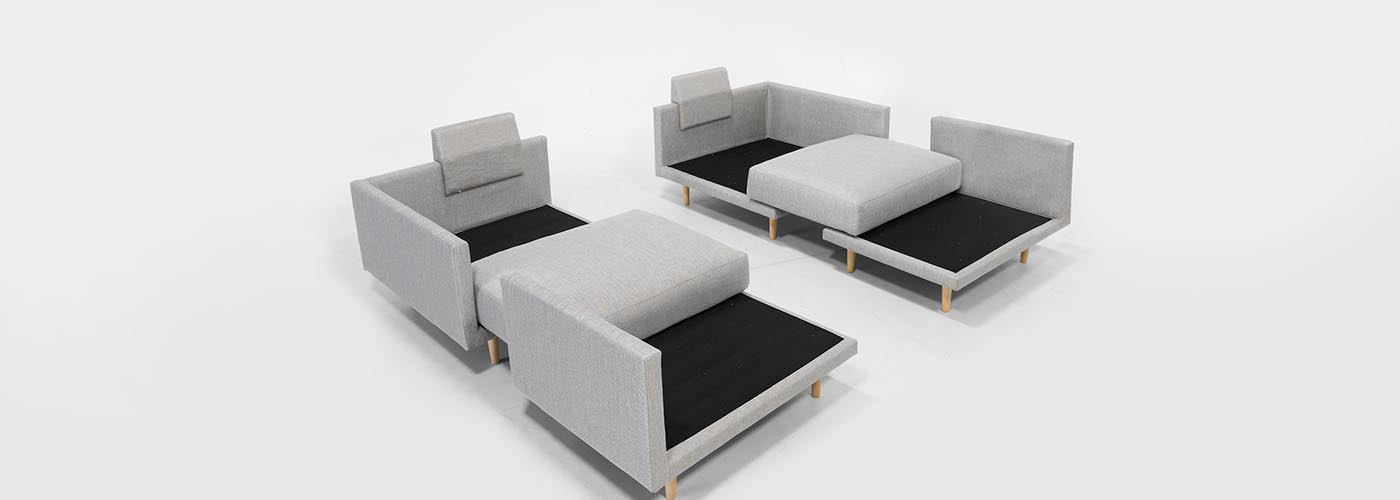 Za pritrditev elementov preprosto namestite priložene dvostranske ježke pod blazini dveh sedalnih elementov.