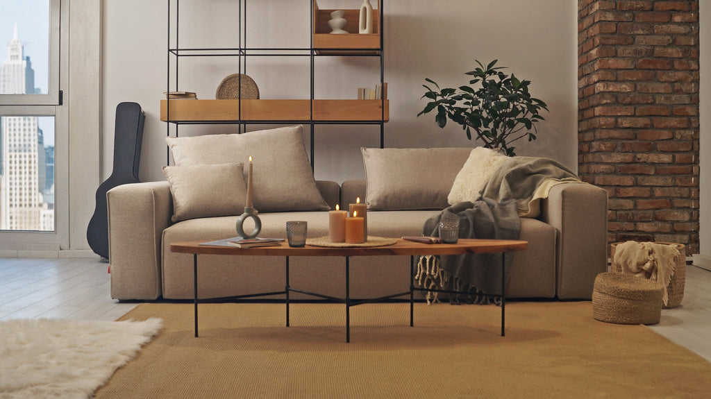 Elementi Bard sedežne garniture se med seboj povežejo s konektorji, ki se zataknejo med lesena ogrodja na spodnji strani in držijo elemente skupaj.