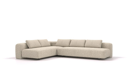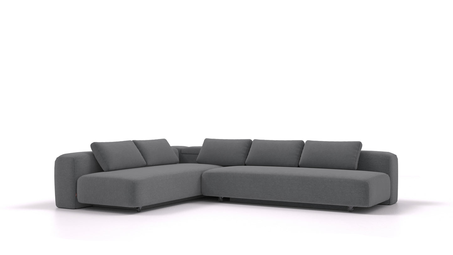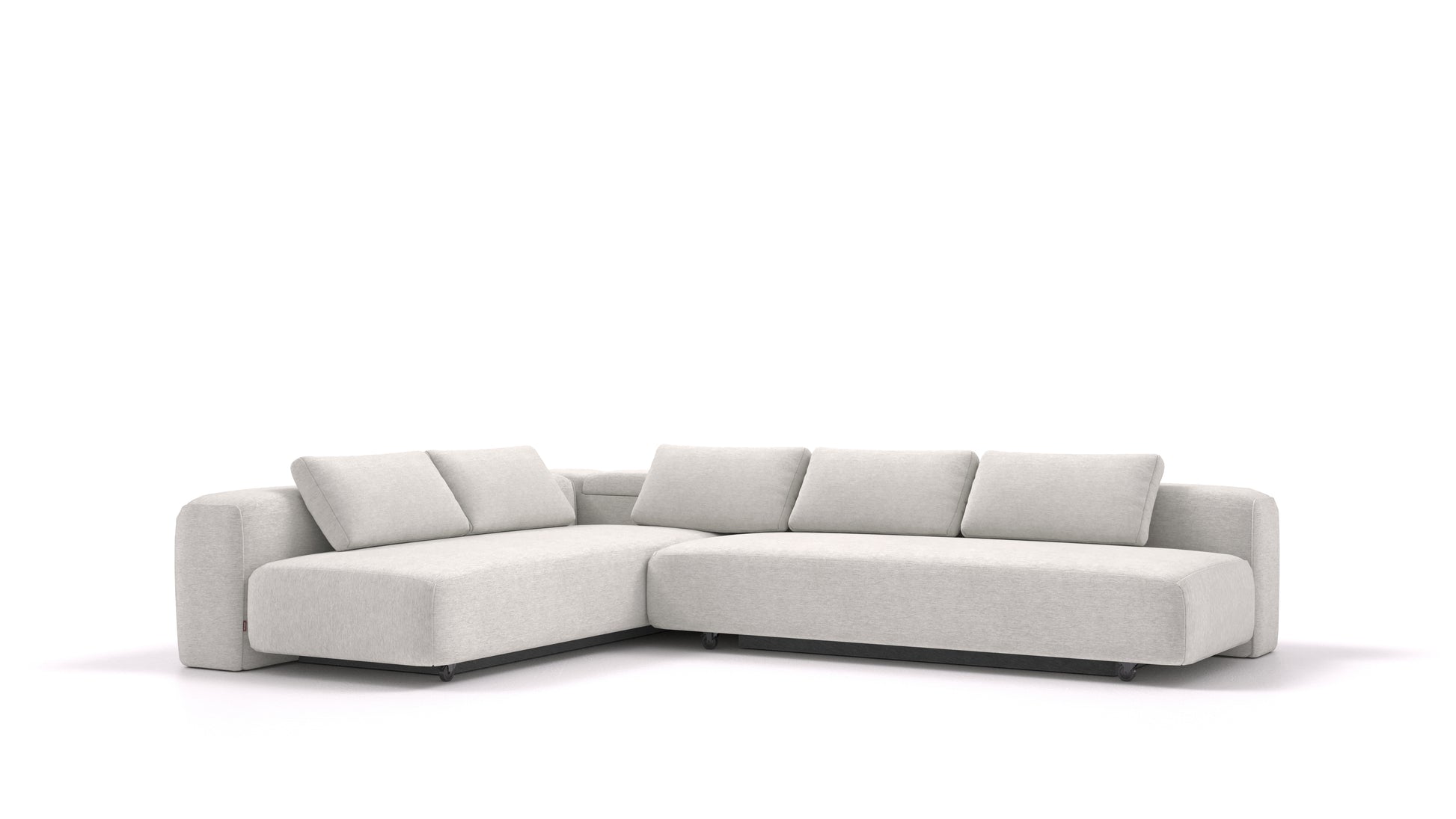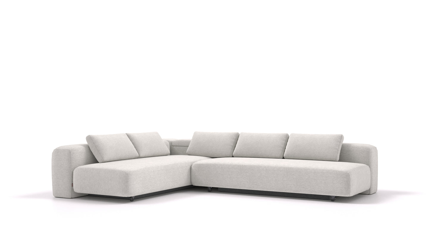 Vsi elementi so elegantnega izgleda, dizajnirani z mehkimi, ukrivljenimi robovi za udobnejši videz in doživetje. Notranja struktura je sestavljena iz lesene konstrukcije, cik-cak vzmeti in hibridne pene, ki poskrbi za mehkobo ter udobje pri sedenju ali ležanju.