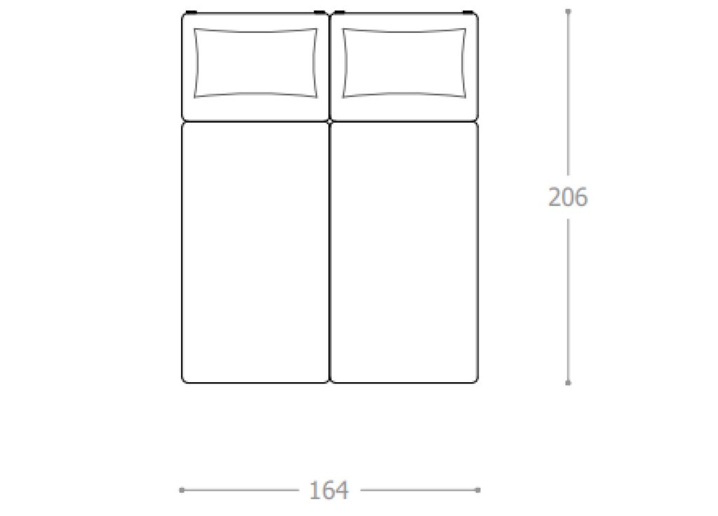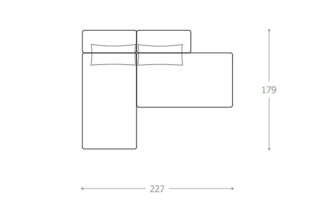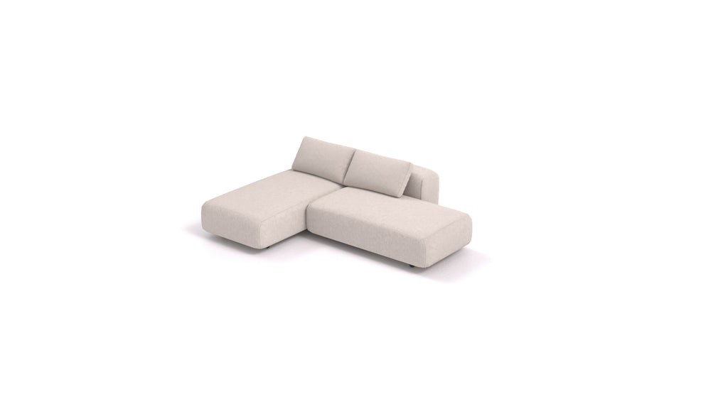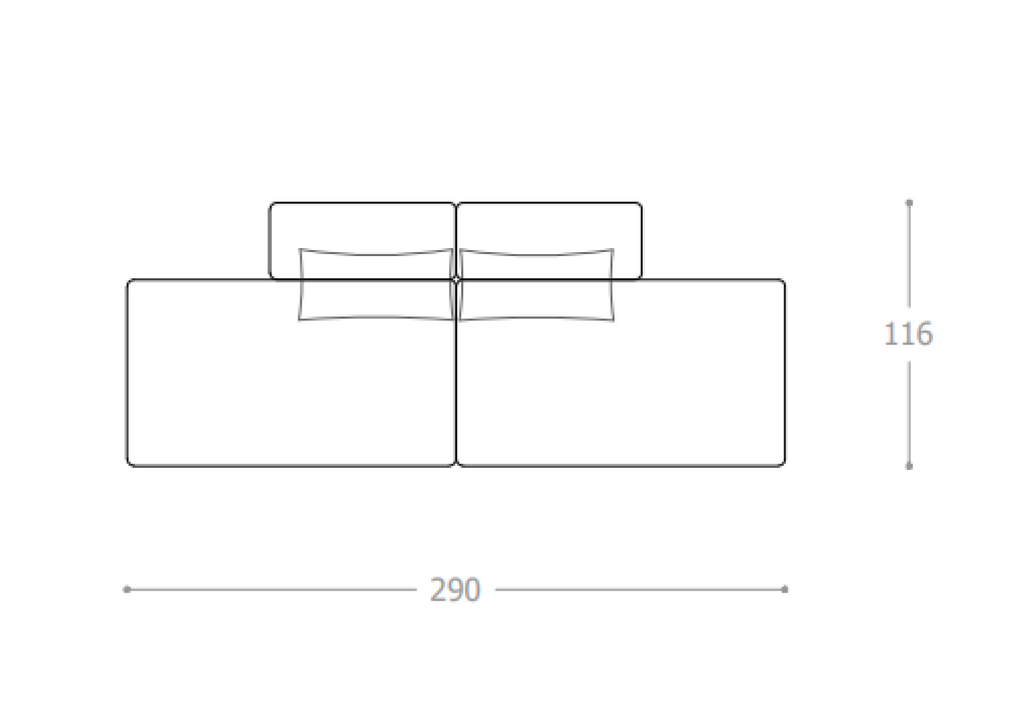 Vsi elementi so elegantnega izgleda, dizajnirani z mehkimi, ukrivljenimi robovi za udobnejši videz in doživetje. Notranja struktura je sestavljena iz lesene konstrukcije, cik-cak vzmeti in hibridne pene, ki poskrbi za mehkobo ter udobje pri sedenju ali ležanju.