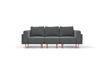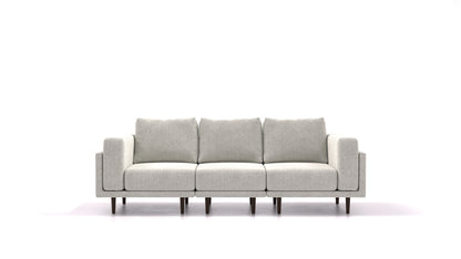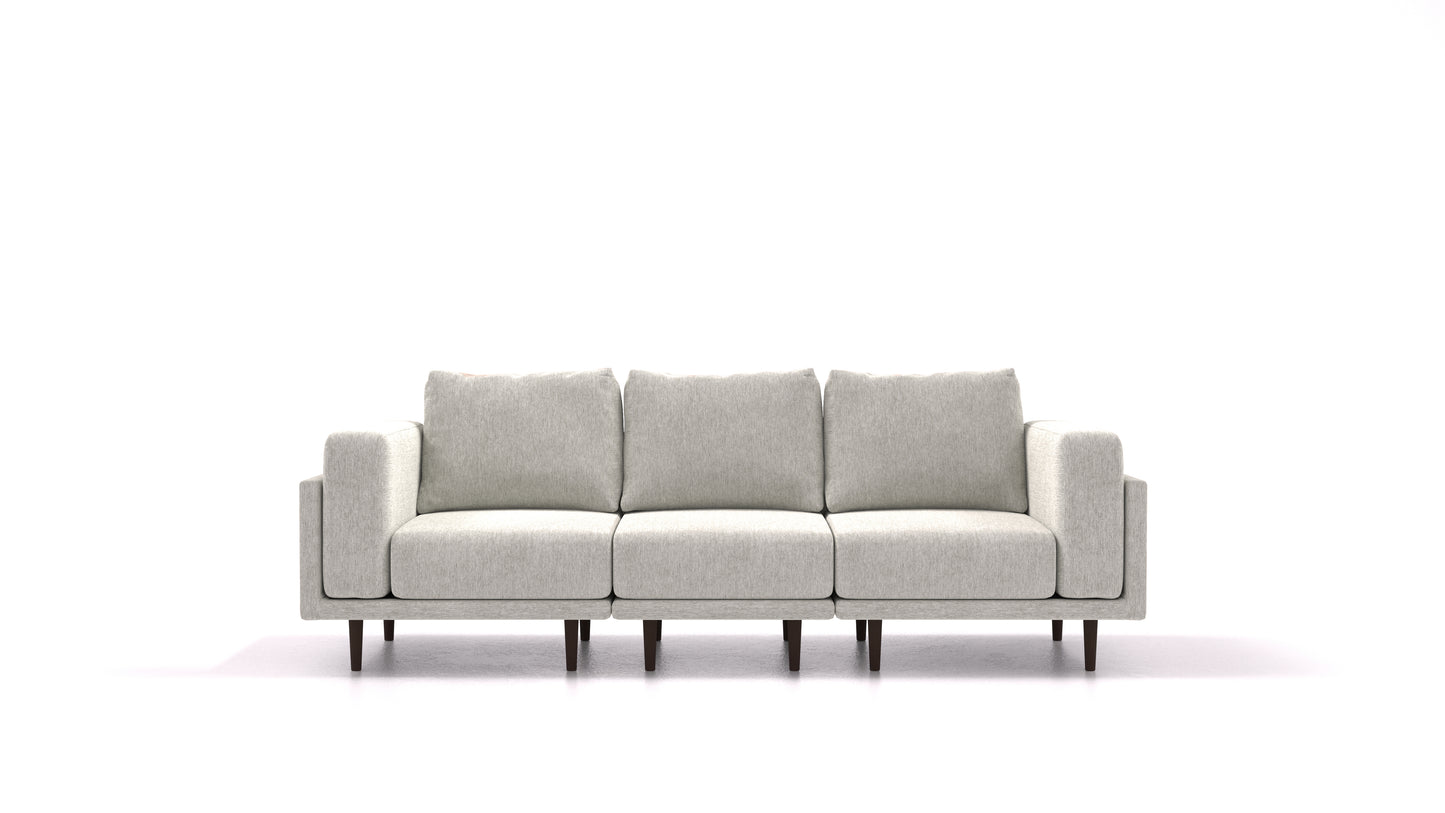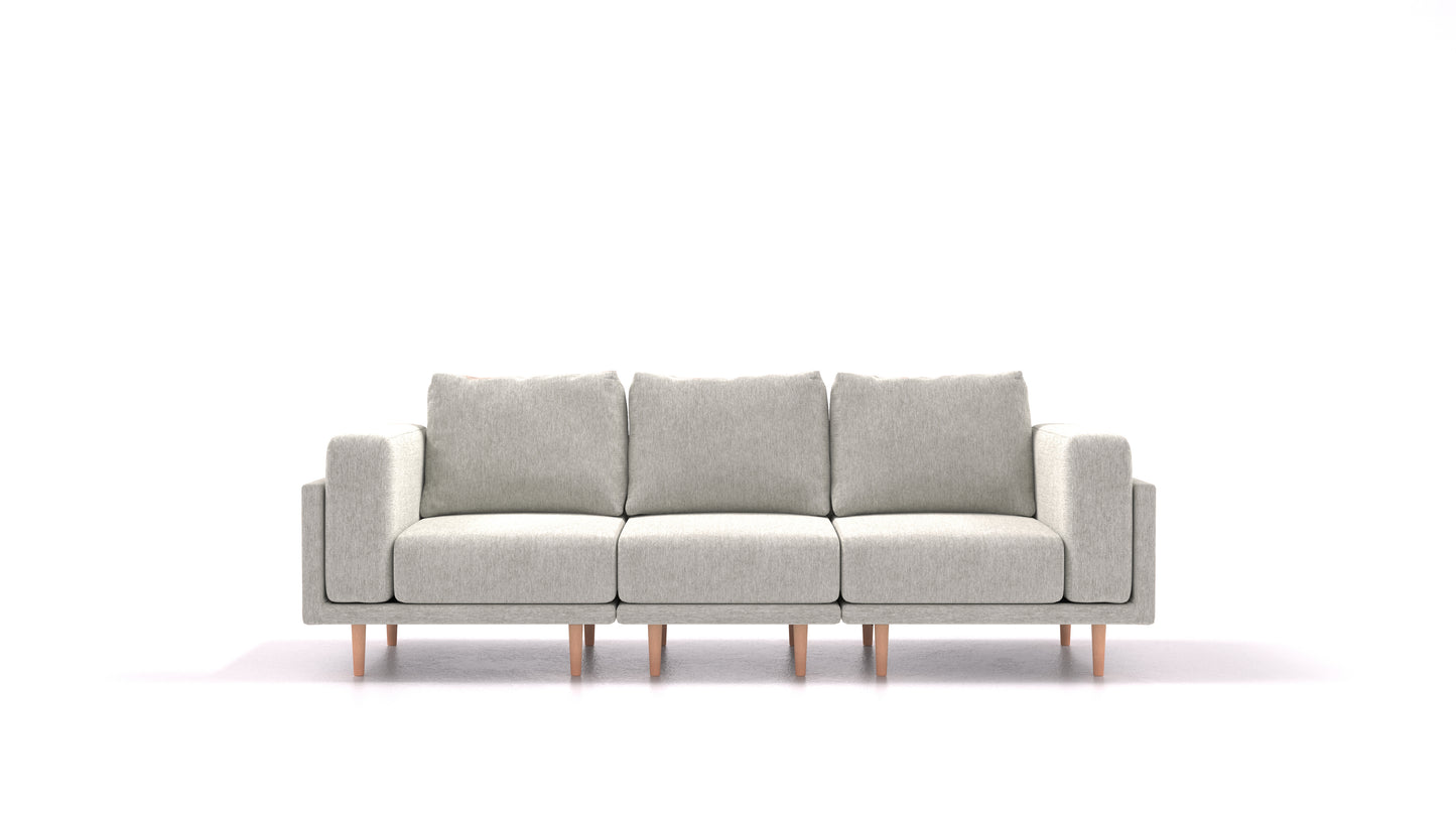 Sedežna garnitura Clooods je dvignjena na nogicah, izbirate lahko med dvema višinama – 17 & 21 cm – ter svetlo in temno barvo. Dvignjene nogice so odlična izbira za tiste, ki imajo talno gretje in tiste, ki sesanje raje prepustijo robotu.