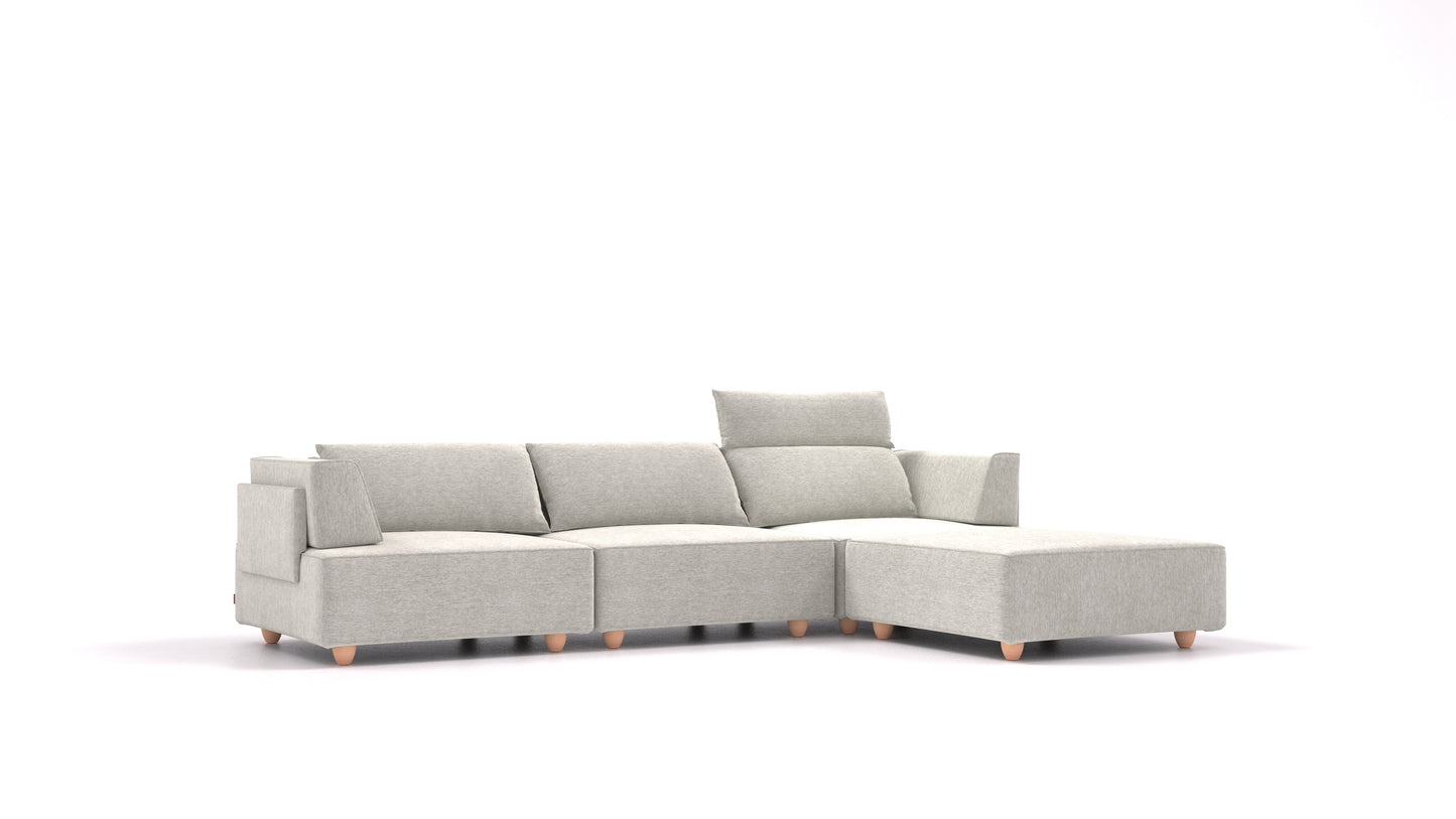 CasCais sedežna garnitura omogoča ogromno prilagajanja, obračanja in prestavljanja v različne postavitve. Spremeniš mu lahko tudi prevleke – vsak element lahko slečeš, prevleke opereš in jih oblečeš nazaj. Če želiš popolnoma nov izgled dnevne sobe, lahko z nakupom novih prevlek zofo osvežiš in jo uskladiš s svojim novim stilom.